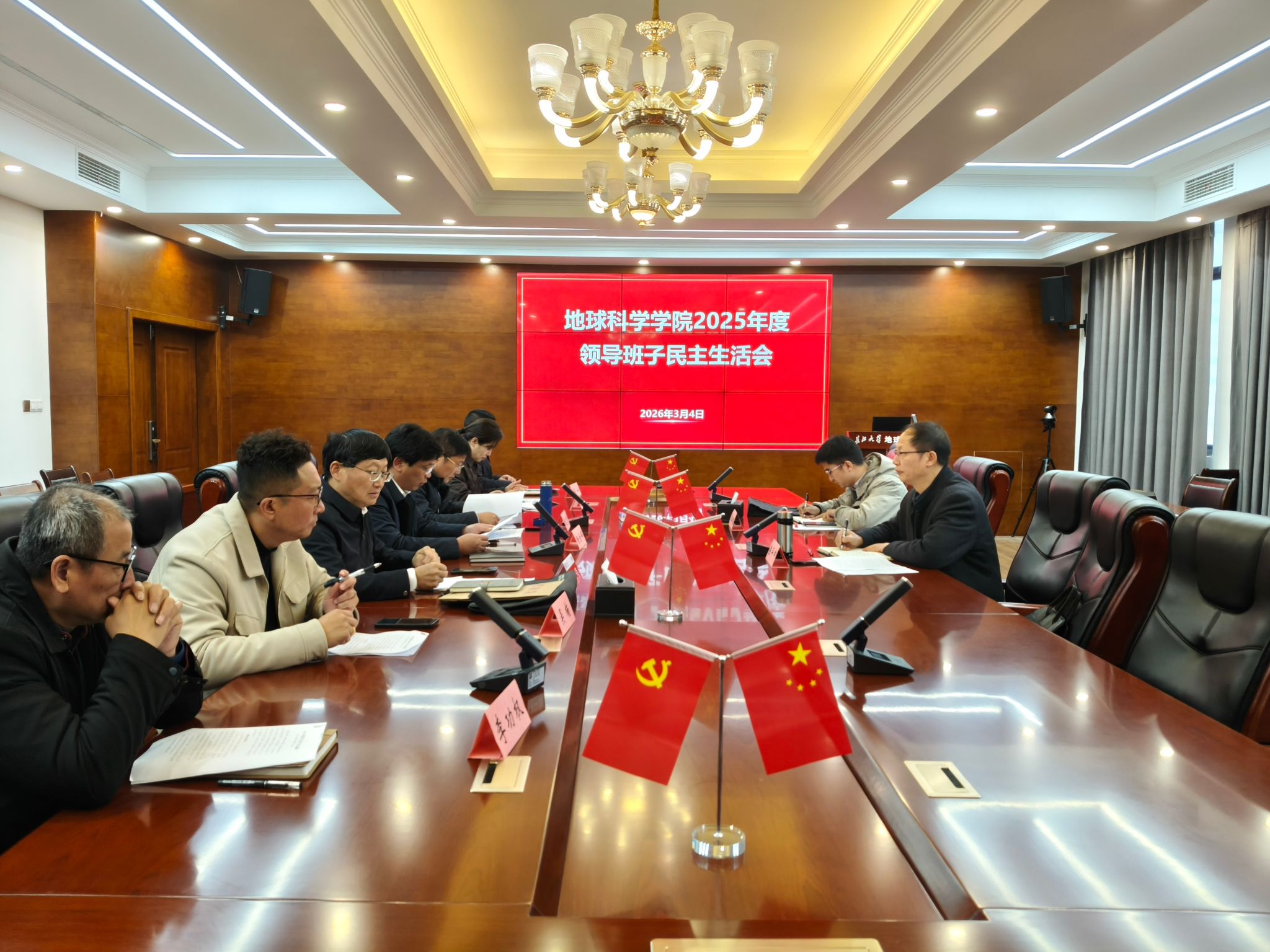 (通讯员程玲)3月4日下午,地球科学学院党委召开2025年度领导班子民主生活会。学校纪委副书记陈平中、校办科长廖鹏程到会指导,学院全体领导班子成员参加会议,学院党委书记杨全辉主持会议。