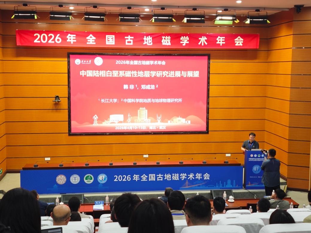 (通讯员 赵前)4月11日至13日,2026年全国古地磁学术年会在中国地质大学(武汉)南望山校区举行。会议由中国地质学会主办,中国地质学会古地磁专业委员会及相关单位承办。中国科学院院士潘永信、方小敏、谢树成等全国50余家科研院所的200余位专家学者参会,会议围绕“构造磁学与地球圈层演化”“环境磁学与全球变化”“生物与矿物磁学”“古地磁新技术与方法”四个专题展开深入交流。潘永信院士作题为《古磁场研究:从地球到月球、火星》的大会特邀报告,系统阐述了行星古磁学研究的科学意义与前沿进展,介绍了国家深空探测计划为学科发展带来的机遇与挑战,并鼓励广大青年师生积极投身行星古磁学研究。