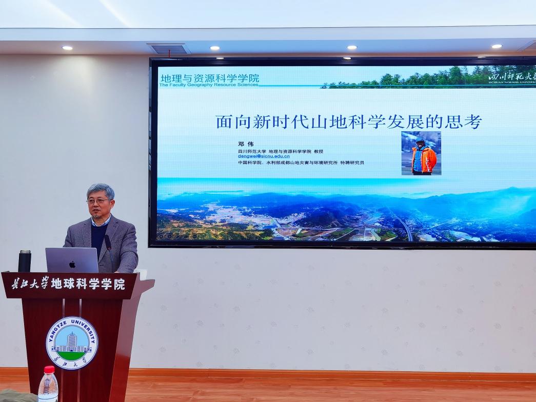 (通讯员 尚成 韩静)11月29日下午,长江大学地球科学学院“地学之光”系列学术讲座第398至400讲在石油科技大楼C301报告厅成功举行。国际欧亚科学院院士邓伟教授、《山地学报》常务副主编朱颖彦研究员、中国科学院杜耘研究员三位顶尖专家应邀来校,分别就新时代山地科学发展、学术论文写作与湿地系统研究作专题报告。长江大学党委副书记敖廷华莅临指导,报告会由陈宁生教授主持,地球科学学院江山副院长出席讲座,学院百余位师生参与交流。