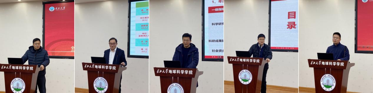 会议第二阶段,各系(中心)进行年终述职,石油系主任叶琳,地质系主任李涛,地信系主任刘远刚,地科系主任刘彬,实验中心支部书记高达依次上台汇报,按照学院年初制定的目标任务对标对表认真梳理,谈成绩,找问题,谋发展。