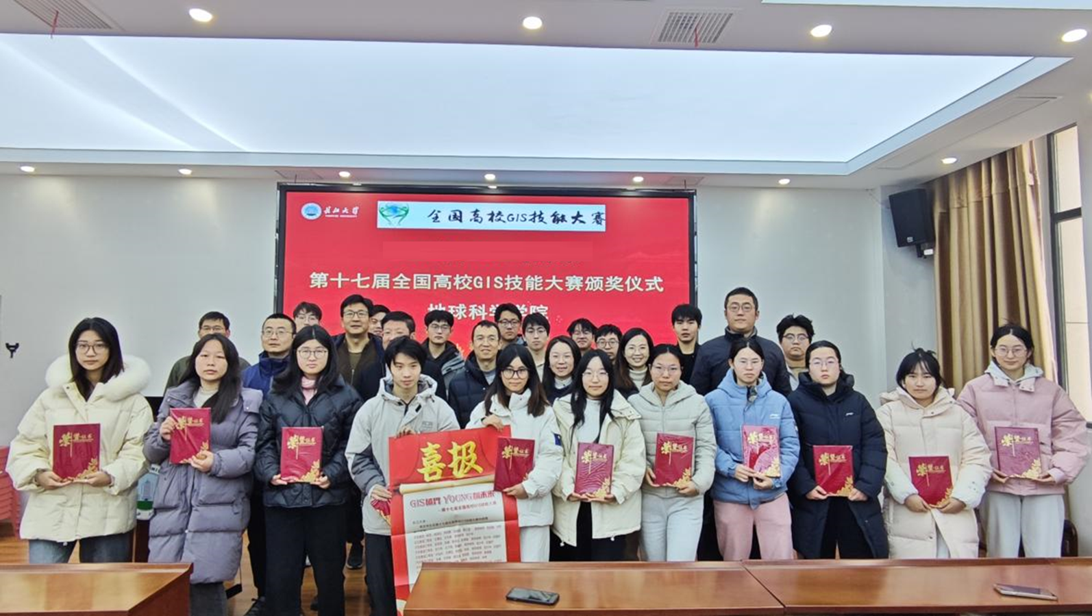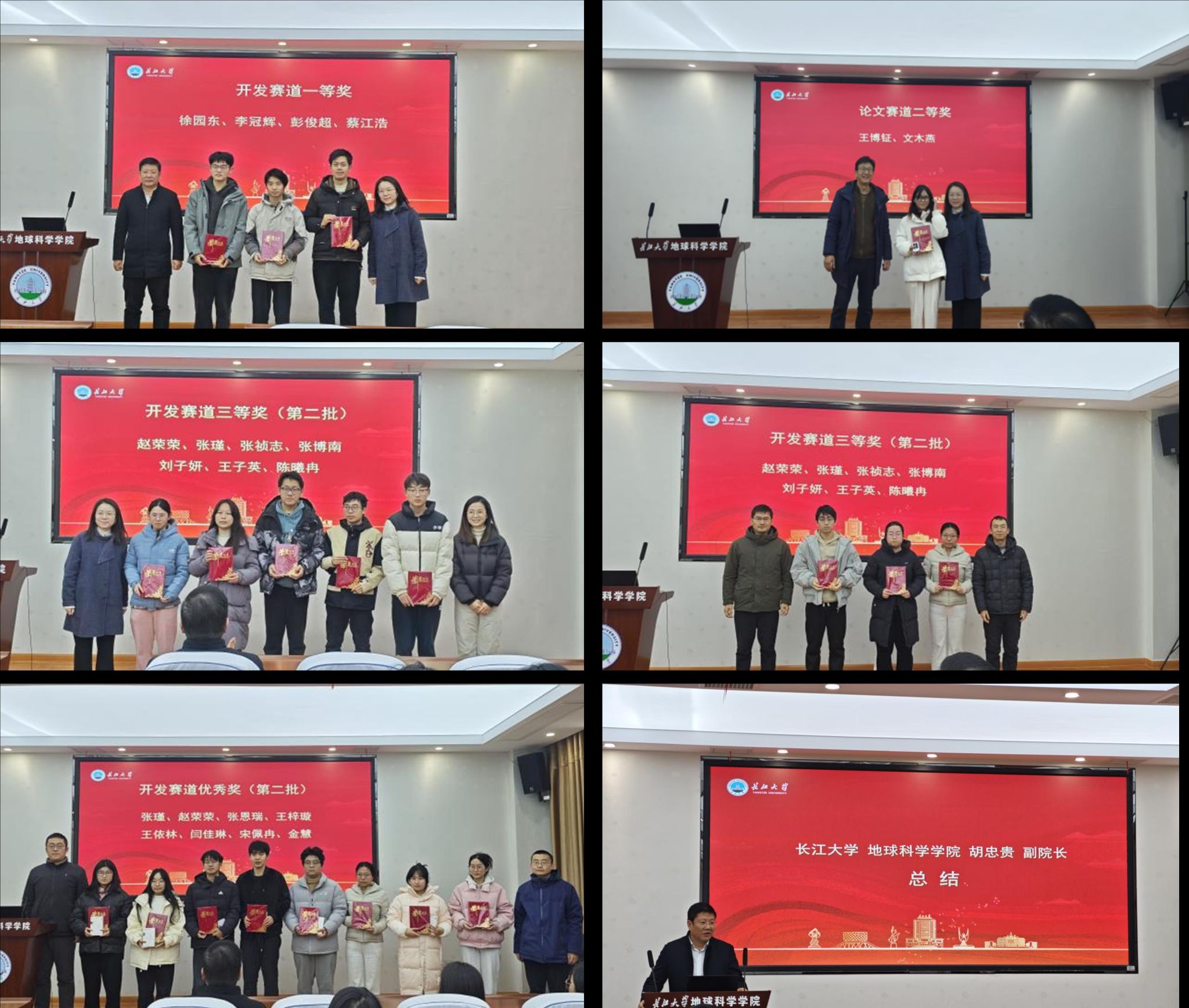 (通讯员 井然)1月12日上午,第十七届全国高校GIS技能大赛颁奖仪式在石油科技大楼C301会议室隆重举行。地球科学学院副院长胡忠贵,教师代表郭霖、乔宇、毕浩浩、刘远刚、邓帆、喻思羽、井然,以及大赛获奖学生代表齐聚一堂,共同分享成功的喜悦。会议由地信系主任刘远刚主持。