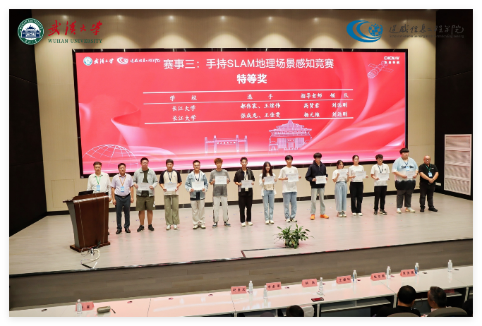 (通讯员 井然)2025年10月12日,由武汉大学主办,武汉大学遥感信息工程学院承办的第一届全国大学生遥感学科大赛在湖北省赤壁市中试谷·智能无人系统测试基地圆满落幕。我院高贤君、井然两位老师带领六位地信系学生,凭借出色表现分别在手持SLAM地理场景感知竞赛、机载激光雷达遥感测图竞赛中斩获2项特等奖、1项一等奖和1项二等奖的好成绩,充分展示了我院在遥感与地理信息科学领域的教学科研成果。