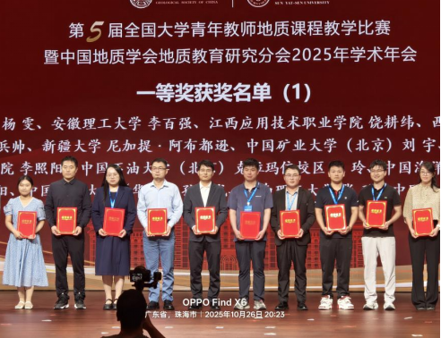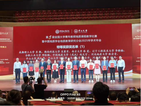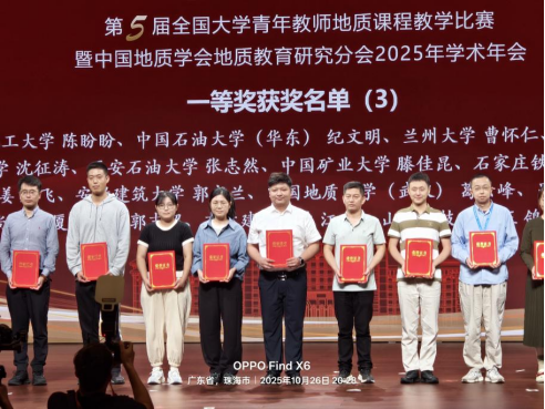 (通讯员 马丽)10月25日至26日,由中国地质学会主办,中国地质学会地质教育研究分会和中山大学共同承办的第五届全国大学青年教师地质课程教学比赛在广东珠海举行,来自全国68所高校的160名青年教师参加了比赛。我院青年教师蔡全升获特等奖,邓庆杰和尚成老师荣获一等奖,长江大学获得优秀组织奖。胡忠贵副院长、高达教授和3名参赛青年教师参加了本次比赛,高达教授担任大赛专家组成员,并受邀做了“沉积岩石学:内波与内潮汐”示范课展示。