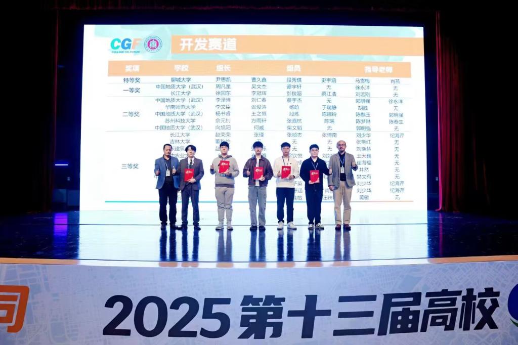 我院参赛团队于今年6月份组建,在刘远刚老师的悉心指导下,从项目立项之初便立足行业实际痛点,针对注采井网监测中存在的数据整合难度大、实时性不足、可视化效果欠佳等问题,依托MapGIS平台核心技术,历经数月的潜心研发与反复打磨,在技术创新性、功能实用性及行业适配性等方面表现突出,得到了评审专家的高度认可,顺利以优异成绩入围全国总决赛。11月7日团队在井然老师的带队下前往华东师范大学参加全国总决赛现场答辩,高级开发组共有8个队伍入围总决赛,其中不乏武汉大学、中国地质大学等传统GIS强校。我院团队成员沉着冷静、逻辑清晰地阐述了作品的设计理念、技术架构与应用价值,并精准回应了专家提问,充分展现了地科学子扎实的专业功底与良好的综合素养,最终凭借过硬的作品质量与出色的现场表现总分名列前三,斩获高级开发组一等奖。