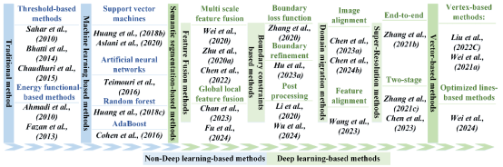 图1基于HRSI的部分代表性建筑物提取方法