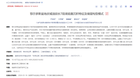 地球科学学院硕士研究生王高寒在《长江大学学报(自然科学版)》发表了题为“鄂尔多斯盆地庆城油田长7段湖底扇沉积特征及储层构型模式 ”的研究论文。