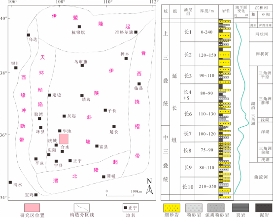 图1 庆城油田华H100-合H60区域位置及延长组综合地层图