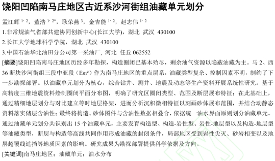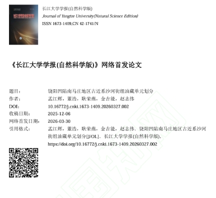 地球科学学院23级硕士研究生董浩在期刊《长江大学学报(自然科学版)》上发表题为“饶阳凹陷南马庄地区古近系沙河街组油藏单元划分”的研究论文。长江大学地球科学学院为论文第一署名单位,硕士研究生董浩为论文通讯作者,其导师孟江辉教授为该文第一作者。