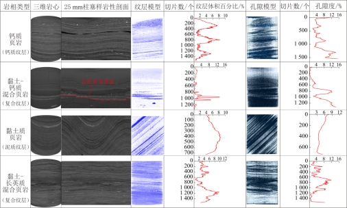 图1 沙三段三维岩心定量化纹层-孔隙模型对比图