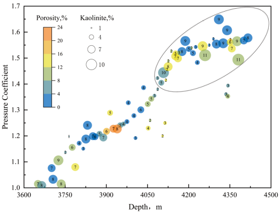 图2 深度-超压-高岭石含量-孔隙度耦合分析
