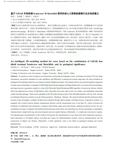 地球科学学院地质学2023级硕士研究生刘普鑫以共同第一作者身份在《长江大学学报(自然科学版)》上发表题为“基于手持终端LiDAR与Scaniverse-Sketchfab联用的岩心三维智能建模方法及地质意义”的研究论文,长江大学地球科学学院为论文第一署名单位,导师张莉副教授为第一作者。