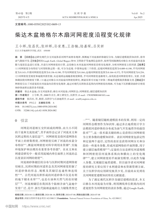 近日,长江大学地球科学学院硕士研究生王令辉在中文核心期刊《沉积学报》发表题为《柴达木盆地格尔木扇河网密度沿程变化规律》的研究论文,长江大学为第一署名单位。