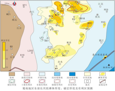 图2 蜀南地区东部长兴组有利储层发育区预测