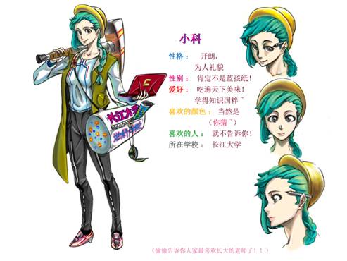 本人在大一担任干事期间,对我院活动宣传方式进行系统总结,在原先基础上根据我校同学们对新宣传方式的接受程度,设计这款只属于地球科学学院团委学生会的动漫形象——“小科”。