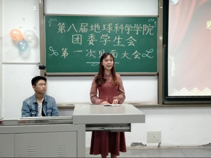 (通讯员 蒋晓洁)10月12日下午七时,在武教A-103,我院举行第八届学生会第一次全体例会于教学楼A栋103举行。本次大会出席的人员有地科院党委副书记任倩、学工办主任肖斌、团委书记廖鹏程以及张严和罗小玉两位辅导员。