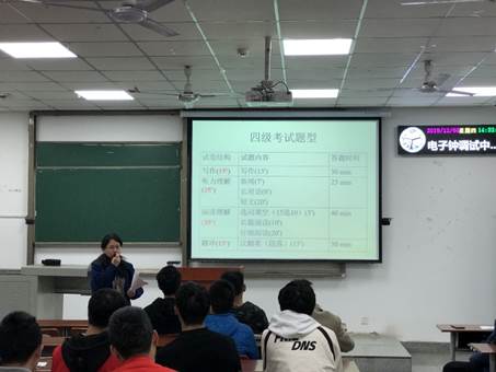 (通讯员 杨金辉)12月5日(周四)下午2点半,学院邀请到了长江大学外国语学院曾益老师在武教A-102举行大学英语四级讲座。