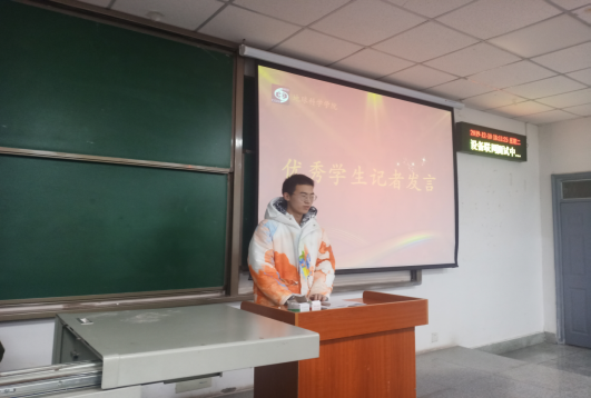 (通讯员蒋晓洁)为更好开展我院宣传工作,激发院媒队伍的工作积极性和有效性,12月10日晚6时,我院于教学楼A—102召开2018—2019学年优秀学生记者表彰大会,获奖学生记者和19级各班代表参加,学工办老师潘志远、辅导员罗小玉、兼职辅导员归航及团委学生会主席团代表作为颁奖嘉宾出席大会。