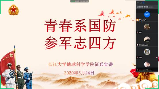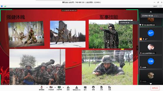 (通讯员 王铃淇)为鼓励我院学生积极参与应征入伍,提高兵员征集质量,推进国防和军队现代化建设,我院开展大学生入伍宣传工作,我院于5月24日晚7时,在腾讯会议召开“青春系国防,参军志四方”征兵宣讲主题活动。此次会议由张严老师主持。