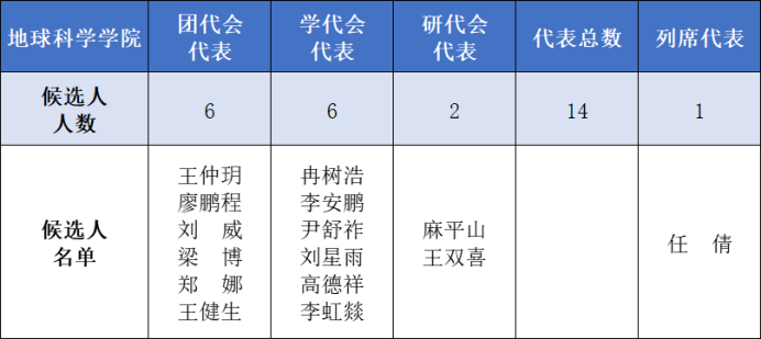 经各班级团支部推选,学院团委学生会、研究生会酝酿,学院分团委讨论并上报学院党委审核,共青团长江大学第二次代表大会代表候选人初步名单如下,现予以公示。公示期为2020年10月2日-2020年10月4日(公示期3天)。