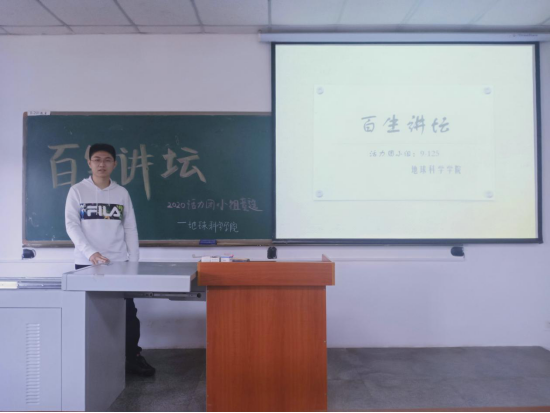 (通讯员 张纪豪)为进一步学习弘扬贯彻习近平新时代中国特色社会主义思想和党的十九大精神,院团委学生会学习科创部于10月11日晚7点在A-107开展2020年“百生讲坛”——地科青年说评比活动,学习宣传贯彻习近平新时代中国特色社会主义思想活动,我院团委书记廖鹏程老师出席本次活动。