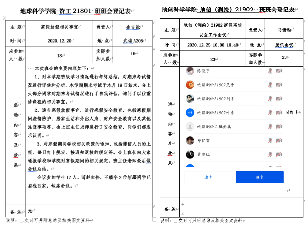 我院高度重视此项工作。学院党委副书记任倩在12月24日全院教职工大会上对此项工作进行了具体的布置与说明,党委书记江万哲和院长胡明毅均向全体老师再次强调了寒假学生安全及疫情防控的重要性,提醒各位老师要高度重视。学工办还提前拟定了《地球科学学院寒假安全和疫情防控要求须知》,供全体人员学习。