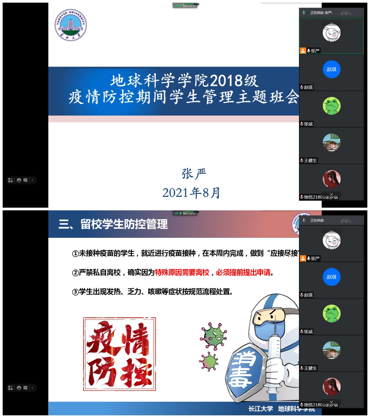 目前,我院依旧严格按照《长江大学2021年暑期学生管理及秋季开学学生返校工作方案》开展学生管理工作,每周全体辅导员老师深入学生宿舍开展疫情防控与宿舍安全教育,随时通过班级QQ群、微信群宣传学校的相关政策。