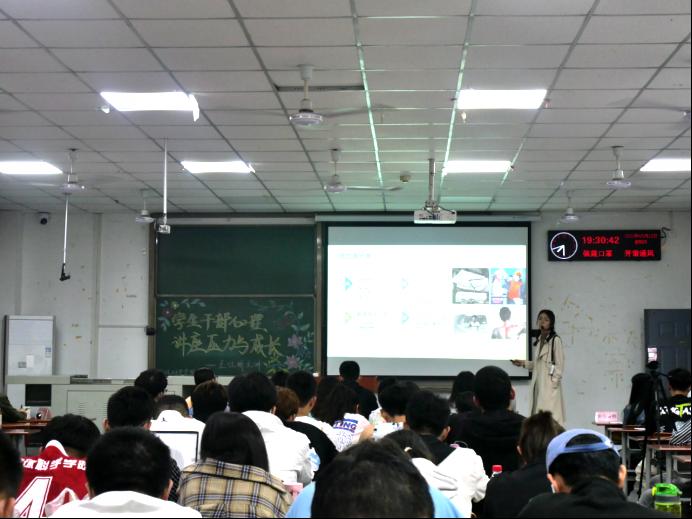 (通讯员:徐子淇 摄影:徐业兴)为更好地培养学生骨干的专业胜任力,5月12日晚7时,我院于武教A-103开展“压力与成长”主题讲座。讲座由我院心理专干王红桥老师主讲,21级108人线下参加,高年级与研究生心理骨干共695人,通过雨课堂、bilibili直播同步线上学习。
