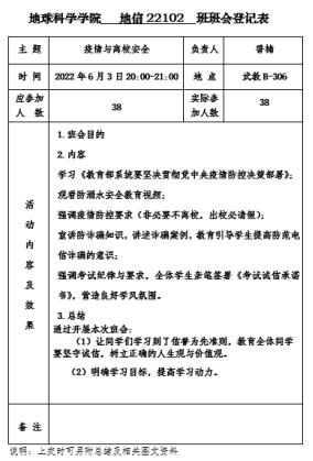 我院在学校下发的材料中,安排班委领学疫情防控期间高校学生违反疫情防控政策相关案例,组织学生100%签署诚信考试等相关承诺书。并结合学院各年级学生的具体情况,有针对性的“划重点”,比如对于低年级学生,即将首次参加国家级英语四级考试,重点放在考风考纪教育;对于大二至大三的学生,强调严格请销假、防溺水、反诈骗以及诚信考试;针对毕业生,着重进行学习“禁酒令”等安全文明离校教育,防止出现聚众饮酒等意外状况。