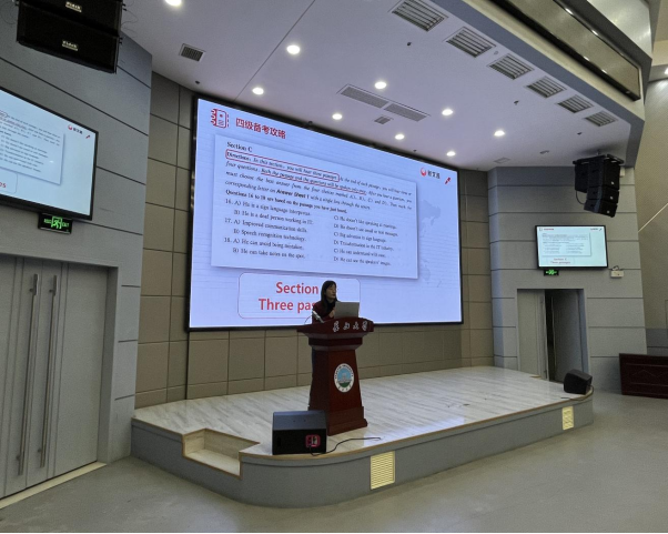 (通讯员 刘家玉)为提升我院2022级本科生英语四级听力水平,科学合理备考听力,掌握听力考试技巧,我院于3月20日晚18:30,在长江大学武汉校区学术报告厅举行了英语四级听力技巧专题讲座,讲座由新文道英语名师段依莎主讲,学工办姚佳、黄瑱以及357名本科生全员参会。