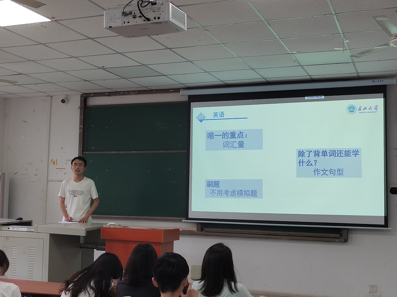 (通讯员 张梦琪)为助力我院20级本科生进一步明确考研目标、提高考研热情、增长考研知识,我院于6月7日14:30在A-109教室举行了考研经验分享会。来自19级6位成功上岸的同学用自己的切身经历为大家提供了详细的信息收集、院校选择、复习计划、复试准备和压力调节等方面的分享和交流。分享会由20级辅导员郭霖老师主持,共近百名同学参会。