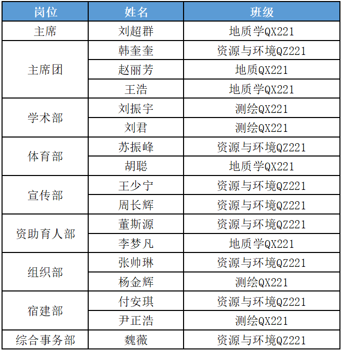 经上届主席、部长推荐、本人申请,学院统一资格审查,以及公开竞聘汇报等流程,我院第九届研究生会主席团及部长拟录用名单已确定,现予以公示。公示期为2023年9月21日-2023年9月23日(公示期为3天)。