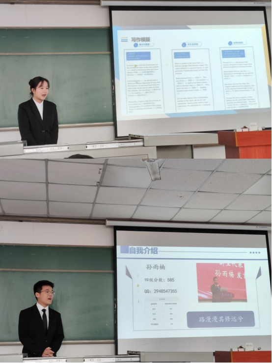 最后,22级优秀学生代表周梦欣和孙雨楠,从英语的听力、阅读和写作三个板块,为同学们分享了英语四级的备考经验和解题小妙招,为同学们答疑解惑,帮助同学们科学合理备考。