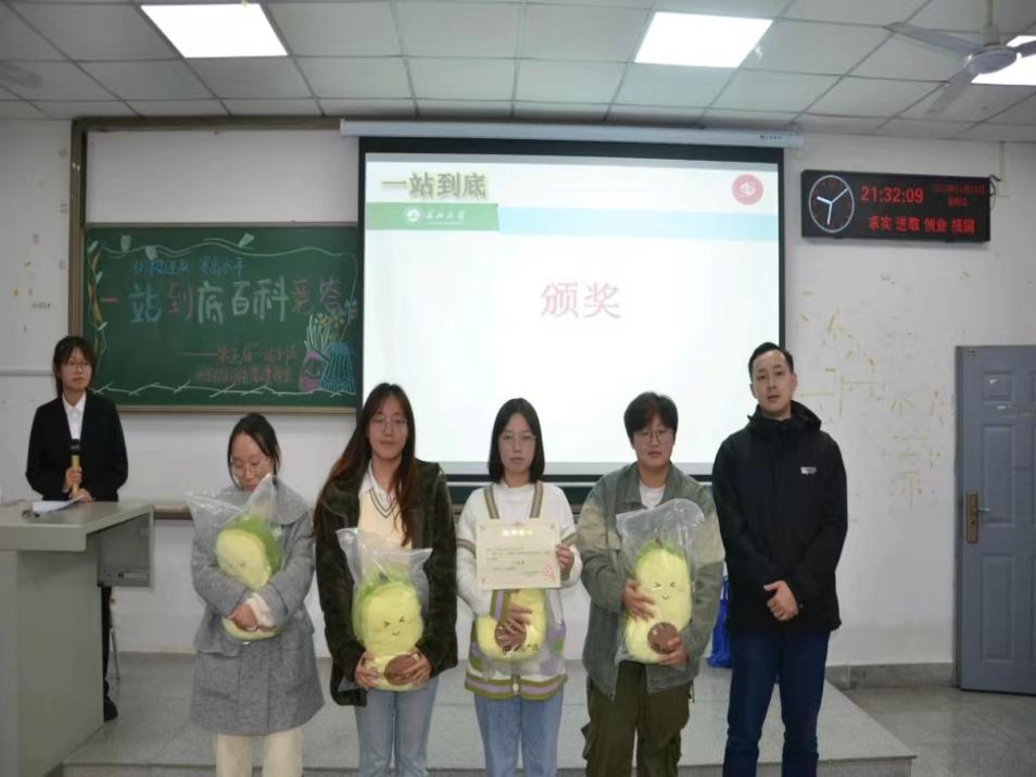 (黄瑱 王雨鑫/文 冯倩 关梅堃/图)11月24日晚6时30分,由地球科学学院团委学生会主办,团委学生会宿建部承办的“一站到底”百科知识竞赛在武教A-103成功举行,我院共有124名同学参赛,学工办乔宇老师和黄瑱老师出席本次活动。