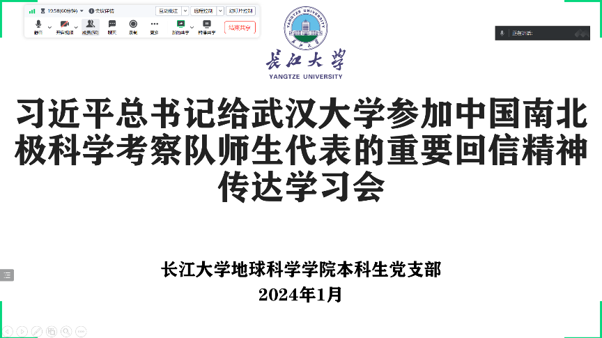 (通讯员姚佳胡景怡)1月22日下午,地球科学学院通过线上、线下结合的方式,召开习近平总书记给武汉大学参加中国南北极科学考察队师生代表的重要回信精神传达学习会,全体本科生及创新理论学习小组成员参加本次大会。
