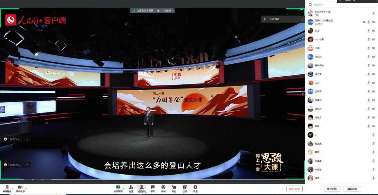 在教室中观看的同学们聚精会神,认真领悟“扎根中国、胸怀天下,勇攀高峰、追求卓越”的攀登精神,会后围绕“攀登”展开热烈讨论,地科22202班刘家玉表示:“这堂思政大课让我深刻认识到,无论面对怎样的困难挑战,只要心怀信念、勇于拼搏,就一定能攀上人生巅峰,实现自我价值,同时为国家和社会作出更大的贡献。”