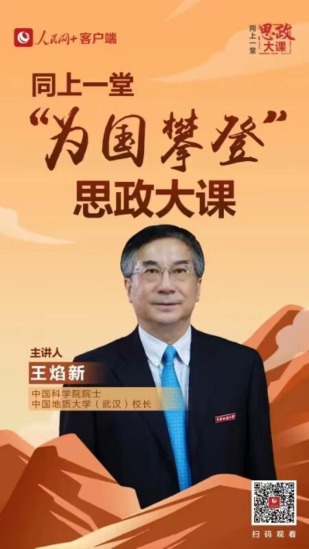 本期节目以攀登为主题,由中国科学院院士中国地质大学(武汉)校长王焰新、地球科学学院教授宋海军、体育学院90后青年教师何鹏飞讲述征服珠峰的感人故事,围绕民族精神、时代使命和个人责任展开讨论,引导新时代青年深入思考、明确目标、肩负起时代的责任。