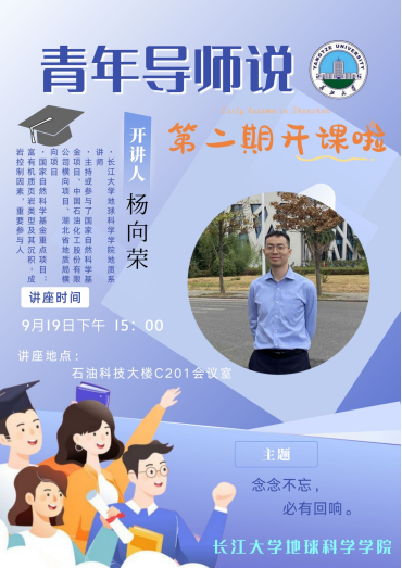 (通讯员刘佳琪)为充分发挥青年导师的榜样引领作用,增进师生之间的交流与互动,9月19日下午两点,我院在石油科技大楼C202会议室召开地科院导师组系列活动之“青年导师说”座谈会(第二讲)。座谈会由杨向荣老师主讲,前期通过自主申报同学参加了座谈会。座谈会由学工办乔宇老师主持。