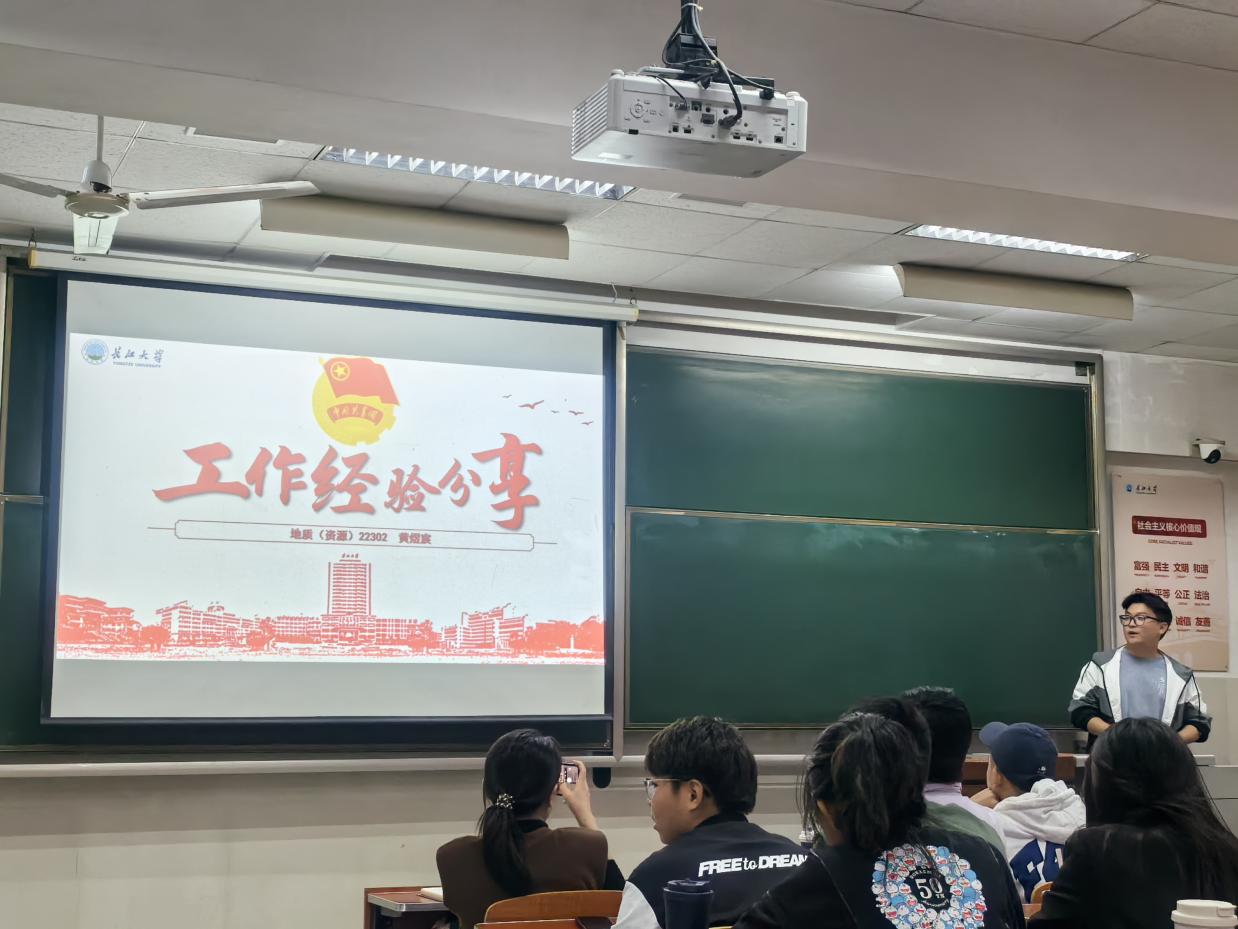 随后,地信(产业)22201班的班长齐缘,分享了自己的工作经验和心得体会,从组织活动、团队协作、沟通技巧等多个方面进行了深入详细的阐述,强调了学生干部拥有乐于奉献精神的重要性。地质(资源)22302班的团支书黄煜宸,讲述了如何调动同学们的积极性,增强班级凝聚力,让大家在学习和生活中相互支持、共同进步,分享了自己在组织大型活动时的策划与执行经验,强调了提前规划和明确分工的重要性。