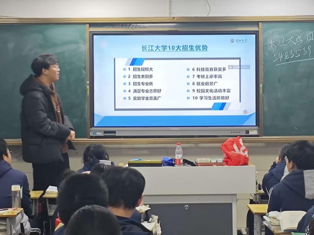 寒假期间,地信12401班的倪浩然同学与其他几名同学回到了高中母校—荆州市江陵中学,开展了一场意义非凡的宣讲活动。在宣讲中,倪浩然详细介绍了长江大学的往届分数线、优势学科以及历史变革,让母校的同学们对这所“家门口的一本大学”有了更深入的了解,增强了他们填报长江大学的意愿。 同时,他还分享了自己的学习心得与见解,为学弟学妹们提供了各学科的学习方法,帮助他们缓解考试焦虑,为高三生活注入信心与动力。
