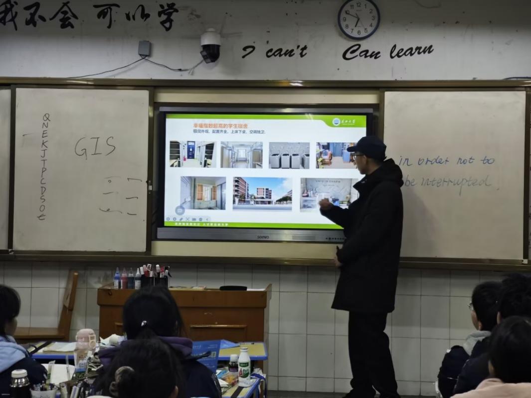 地信12401班的吴越同学带领团队回到母校,组织了一场生动的分享会,成员们分别分享了自己在大学的学习经历、生活体验以及对未来的规划和展望。他们播放了提前录制的大学生活视频,青春洋溢的画面让学弟学妹们对大学生活充满了期待。此外,他们还组织了座谈会,倾听学弟学妹们在学习和生活中遇到的困惑,并分享了团队成员的经验和感悟,为学弟学妹们提供了最真实、最贴切的建议。