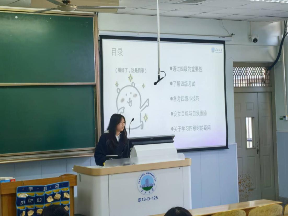 随后,两位老师强调了英语四级考试对学生个人发展和学院人才培养的重要性。他们指出,英语作为国际通用语言,在全球化背景下的重要性日益凸显,熟练掌握英语不仅有助于同学们拓宽国际视野,还能为未来的考研、就业等打下坚实基础。同时,他们也肯定了同学们在英语学习方面付出的努力,并鼓励大家在接下来的备考过程中坚定信心,持之以恒。