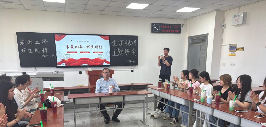 (通讯员梁浩/文 黄乐源/摄)4月18日下午,地球科学学院地信(产业) 22201 班在武教 A-402教室举办了主题为“师生之路 未来同行”的“导师进班会”活动。李功权教授通过深度解析GIS学科前沿与行业趋势,助力学生锚定发展方向。活动由地信(产业) 22201 班班长齐缘主持。