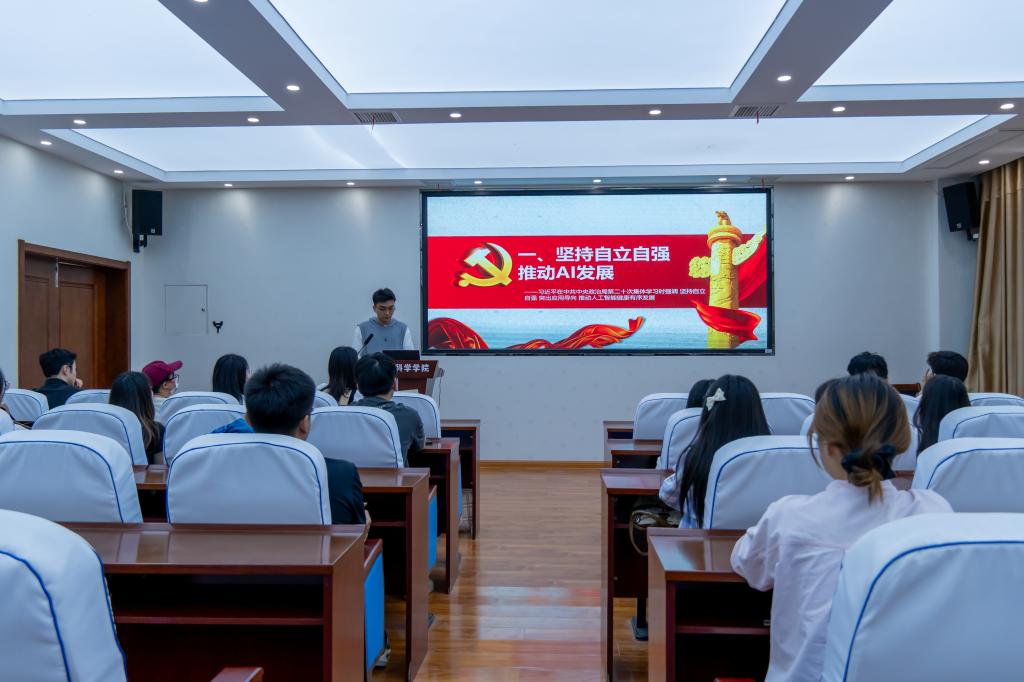 会上,陈雯雯同学领学了《教育强国建设规划纲要(2024-2035年)》。接着,大家集中学习以下内容:习近平在中共中央政治局第二十次集体学习时强调“坚持自立自强 突出应用导向 推动人工智能健康有序发展”的重要讲话、习近平在庆祝中华全国总工会成立100周年暨全国劳动模范和先进工作者表彰大会发表的重要讲话、《求是》杂志发表的习近平总书记重要文章《激励新时代青年在中国式现代化建设中挺膺担当》、习近平在上海考察时强调“加快建成具有全球影响力的科技创新高地”的重要讲话。
