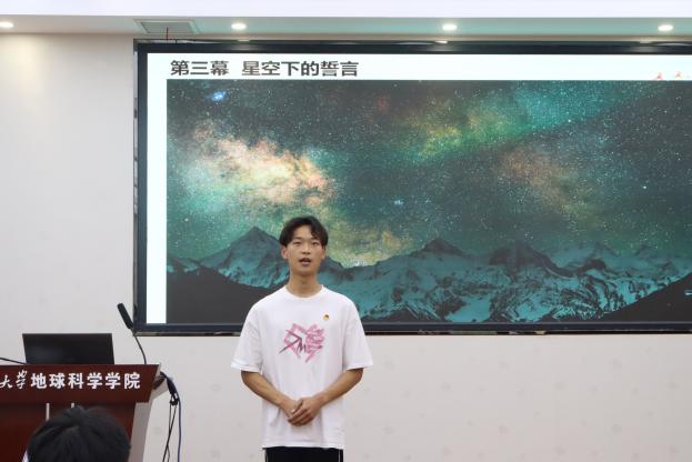 为深化专业认知,同学们上演了名为《坐标 担当》的主题情景剧。学生通过“实验室的争论”“田野里的挫折”“星空下的誓言”三个场景,直观演绎了地理信息技术如何赋能生产生活。剧中学生面临选择时,毅然投身基层的片段呼应了活动主题,赢得全场掌声。