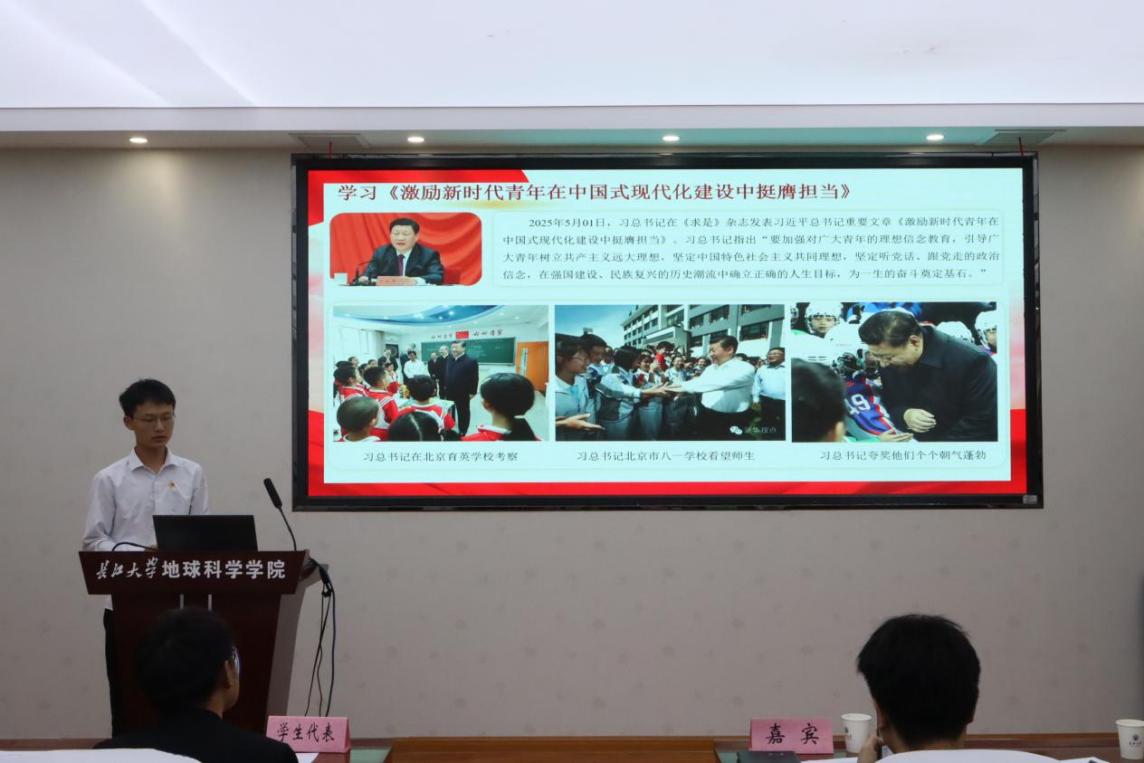 (通讯员 孙浩宇)为强化团员思想引领,增强团支部凝聚力,我院地信22201班于6月4日下午在石油科技大楼C301会议室开展主题教育实践活动。本次活动以“学习回信精神,勇担时代重任”为主题,引领青年学子深刻思考如何将个人成长融入国家发展大局,对围绕服务西部、奉献基层的时代课题展开热烈讨论。学生事务部荆鑫老师、地物学院叶丽珣老师、地科院冯舒老师、毕浩浩老师、地信22201班全体同学、油工学院、资环学院、传媒学院的学生代表参加活动。