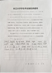 6月7日—11日,学院组织各班级召开“诚信应考”主题教育会,各年级辅导员与班主任协同发力,通过“班会学习+案例警示”双轨模式开展教育活动。班会上,师生共同学习《中华人民共和国刑法修正案(九)》《国家教育考试违规处理办法》《长江大学学生违纪处分办法》等文件重点内容,深入解读考试违规行为认定标准及处分细则。同时,以历年违纪案例为教材,直观展现考试舞弊的严重后果,让学生从真实案例中汲取教训。各班组织学生现场签署《考试诚信承诺书》,承诺书从遵守考试规则、拒绝舞弊行为、维护考场秩序等方面作出庄严承诺,进一步强化学生的责任意识与纪律观念。