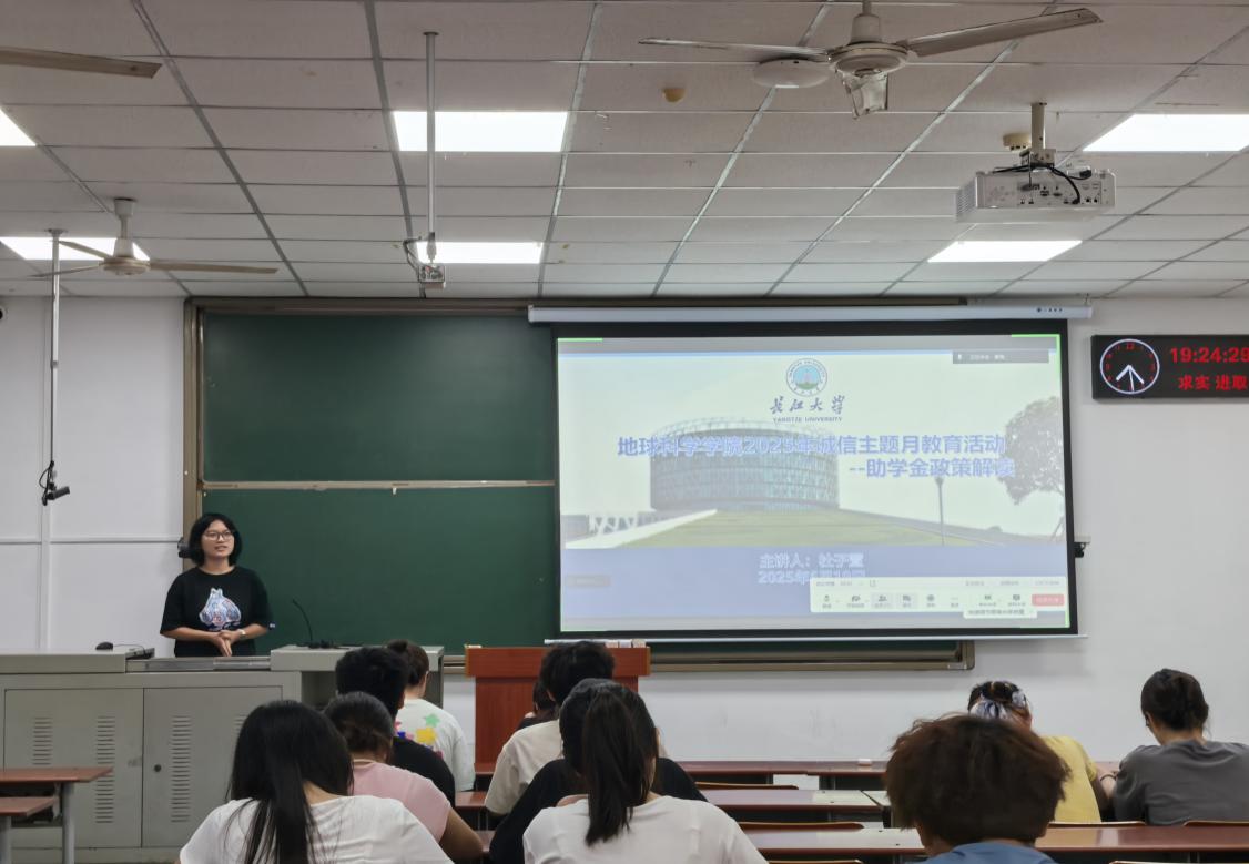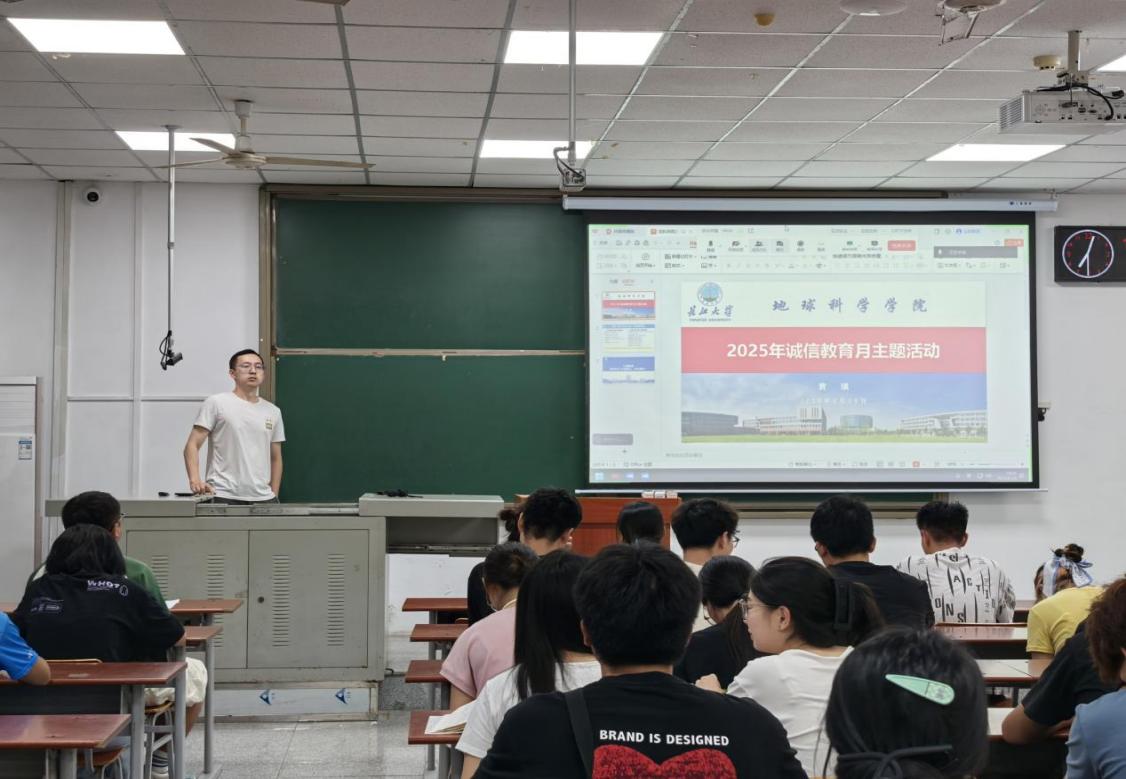 (通讯员 邢佰诗 李雨泽/文 赵帅/摄)为进一步宣传学校及学院资助育人政策,深化资助育人成效,教育引导学生树立诚信观念、增强法纪意识。6月19日晚7时,地球科学学院2025年“诚以立身 信以致远”诚信教育主题活动在武教A-108以线上线下融合方式开展,现场邀请四位学生代表主讲,辅导员黄瑱老师主持,300余名学生参与活动。