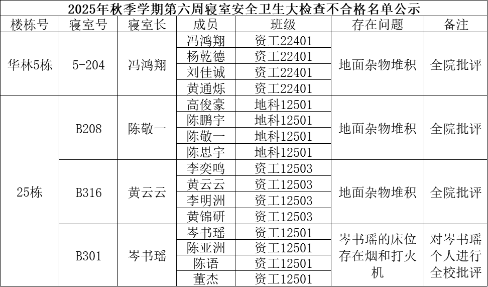 二、通报不合格寝室