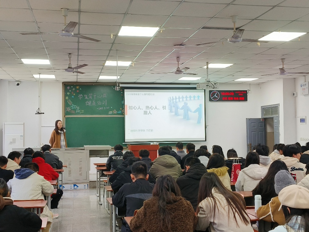 (通讯员 高寒)为提升全院学生骨干的心理健康素养和助人能力,11月20日下午,我院学工办王红桥、黄瑱老师分别在武教A103和东校区12教102开展心理健康专题培训。2025级全体本、研究生学生骨干参训。 王红桥老师以"知心人、热心人、引路人"为主题,从三个方面展开培训内容。首先,她通过引用Nature最新研究数据,向在场学生详细介绍了当前研究生群体的心理健康现状,并结合学院2025级新生心理测评结果,提醒大家关注焦虑、抑郁和失眠等常见问题。 在心理健康知识传授环节,两位老师讲解了心理健康的标准、心理困扰与心理疾病的区别,以及常见心理问题如抑郁症、焦虑症、强迫症等的识别方法。本次培训的重点是心理咨询与援助技能的科普,两位老师详细介绍了心理咨询与心理医生的异同,学校心理咨询的预约流程、服务内容和专业设置,并举例展示了如何有效倾听、共情陪伴以及危机干预的基本步骤。提醒学生骨干在发现同学有异常表现时,要做到"睁大眼睛关注、存颗善心关爱、伸出双手协助、张开嘴巴上报",同时要注意自我保护和及时转介。 通过本次培训,学生骨干们不仅提升了自身的心理健康意识,还掌握了基本的心理援助技能。大家纷纷表示,将把所学知识运用到实际生活中,既要关注自身心理健康,也要积极帮助身边有需要的同学,共同营造健康和谐的校园氛围。 (审核 冯舒 编辑 王红桥)