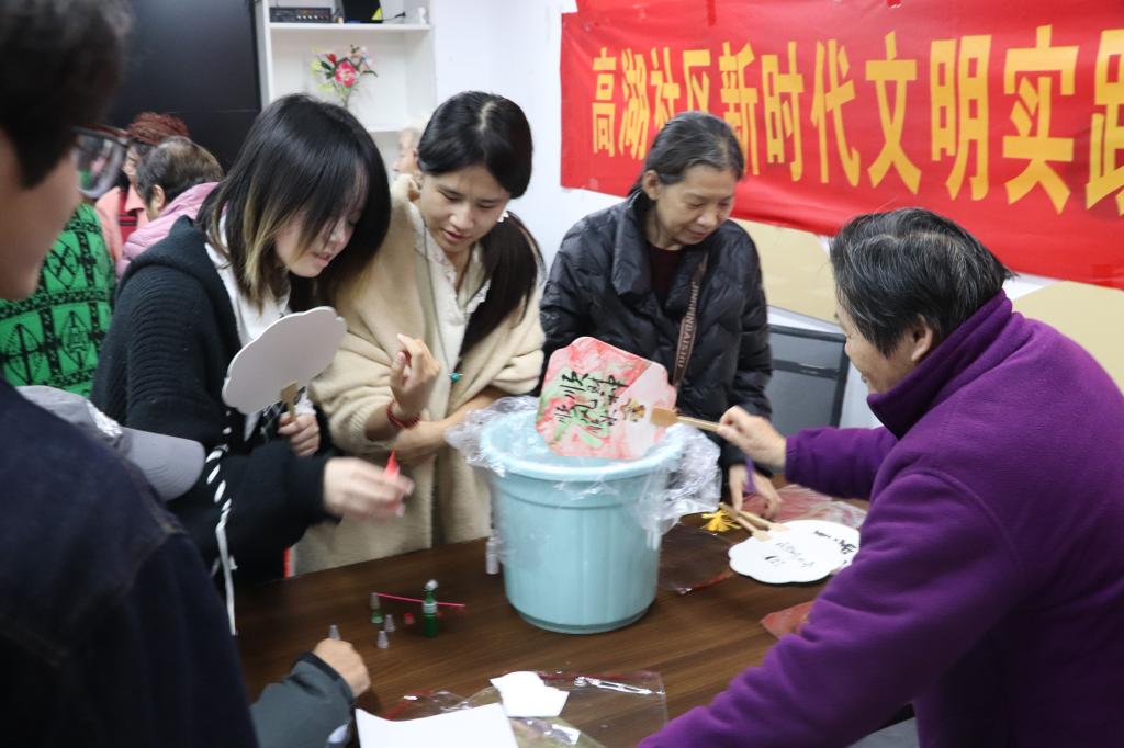 秋韵扇舞·创新传情 ——高湖社区“扇舞风华·指尖创新”活动圆满举行 (通讯员 熊婷)在秋高气爽、丹桂飘香的美好时节,地球科学学院志愿服务部与传媒学院携手高湖社区,于10月23日成功举办了一场别开生面的“扇舞风华·指尖创新”手工创作活动。此次活动不仅为社区居民带来了丰富的文化体验,也促进了大学生与社区居民之间的交流与互动。 活动当天,来自地球科学学院和传媒学院的20名志愿者们,以及高湖社区的30位居民齐聚一堂,共同参与漆扇制作这一传统工艺体验。活动在温馨而热烈的氛围中拉开序幕,志愿者们首先向居民们介绍了扇子的起源、发展及其艺术特色,让大家对这一传统文化有了更深入的了解。 随后,志愿者们详细讲解了水拓画的基本工具和材料,包括颜料、水、扇子等,并亲自示范了水拓画的制作过程。居民们兴致勃勃地观看演示,并在志愿者的指导下,亲自将颜料滴入水桶中,观察色彩在水面上的自然扩散与融合。志愿者们耐心指导居民如何使用扇子在水面上轻轻滑动,引导色彩形成有趣的图案和纹理,强调了扇子的力度和角度对画面效果的影响。 在动手实践环节,居民们充分发挥自己的创意,尝试不同的扇法和色彩搭配,制作出了一幅幅独具特色的漆扇作品。志愿者们则巡回指导,及时纠正错误的操作,并鼓励大家大胆创新。完成作品后,居民们纷纷将自己的扇子水拓画展示在指定区域,互相欣赏作品,分享创作心得和感受。 此次活动不仅让居民们近距离接触和体验了团扇这一传统工艺,加深了对传统文化的了解与兴趣,同时也丰富了社区居民的文化生活,增强了大学生社会实践与服务能力。在轻松愉快的氛围中,学生与社区居民之间的交流得到了增进,为社区日常生活增添了一份温暖的文化体验。 活动结束后,参与者们纷纷表示,此次“扇舞风华·指尖创新”活动让他们学到了新技能,收获颇丰。地球科学学院的志愿者们也表示,通过此次活动,他们更加深刻地体会到了服务社区、传承文化的重要性。 此次“扇舞风华·指尖创新”手工创作活动的成功举办,不仅展示了地球科学学院学生的创新精神,也为高湖社区居民带来了一场难忘的文化盛宴。未来,我们期待更多此类活动的开展,为社区居民带来更多丰富多彩的文化体验。 (审核 冯舒 编辑 毕浩浩)